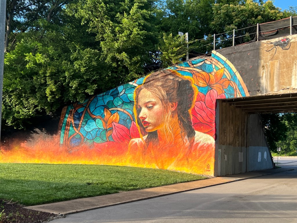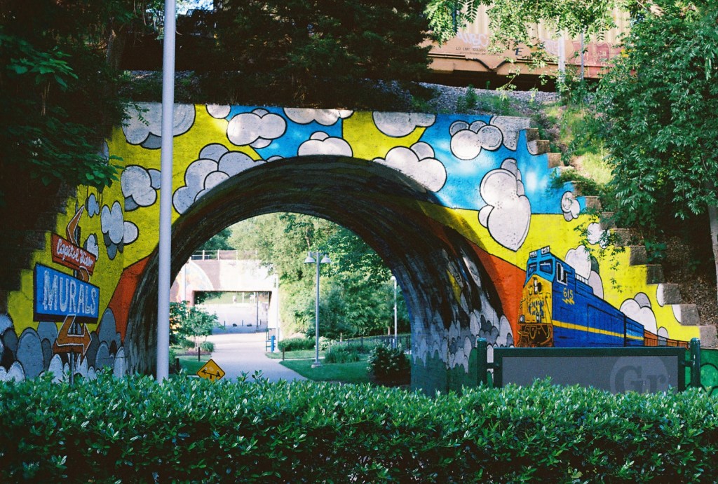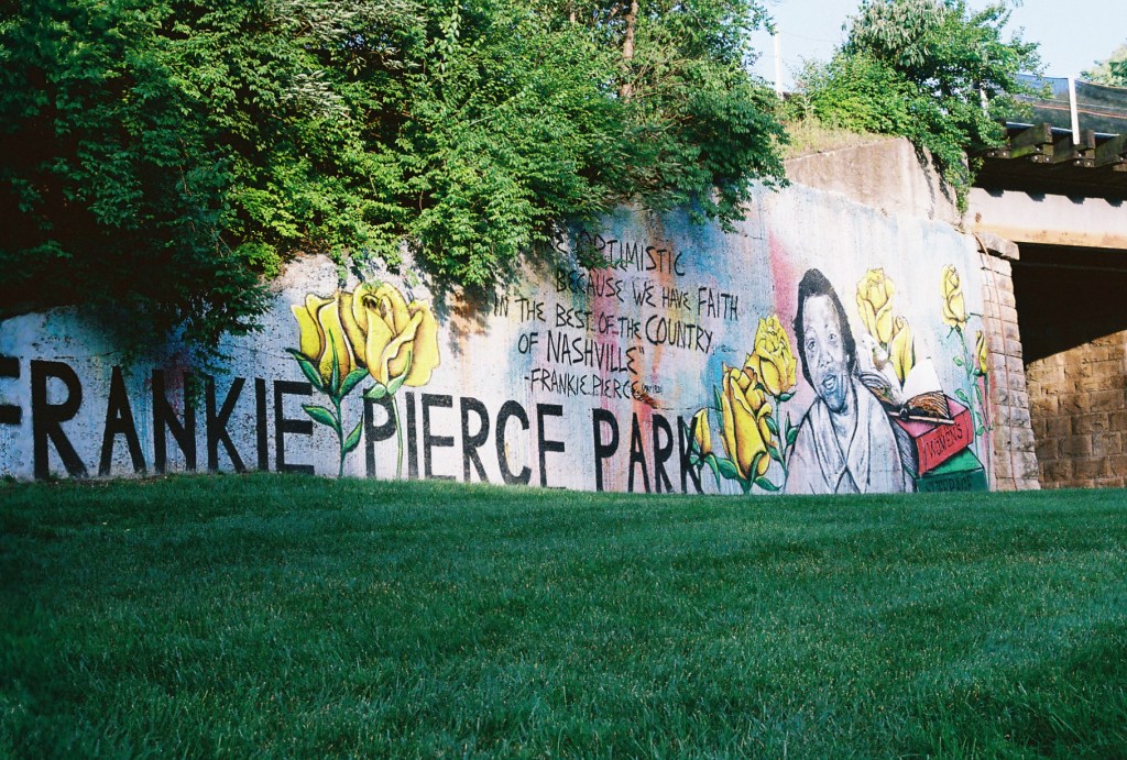 I got into Nashville around the middle of the day. Tesla is good about routing you to chargers along your way. The charger I went to was in the parking garage next to a Publix. After a short walk around, I found myself in Frankie Pierce Park.