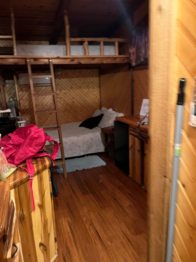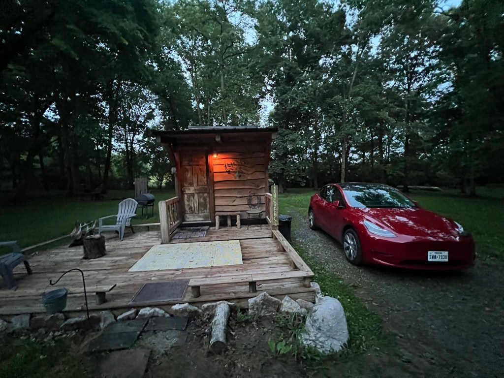 After a few days of sleeping my car (totally chill btw), I decided it was high time to take a shower and sleep somewhere that wasn’t towable. I booked a tiny home in Lebanon, TN, half an hour from the city. The tiny home was tucked away off of the side of a country road in a wooded area with little to no light. It was very cozy and charming.